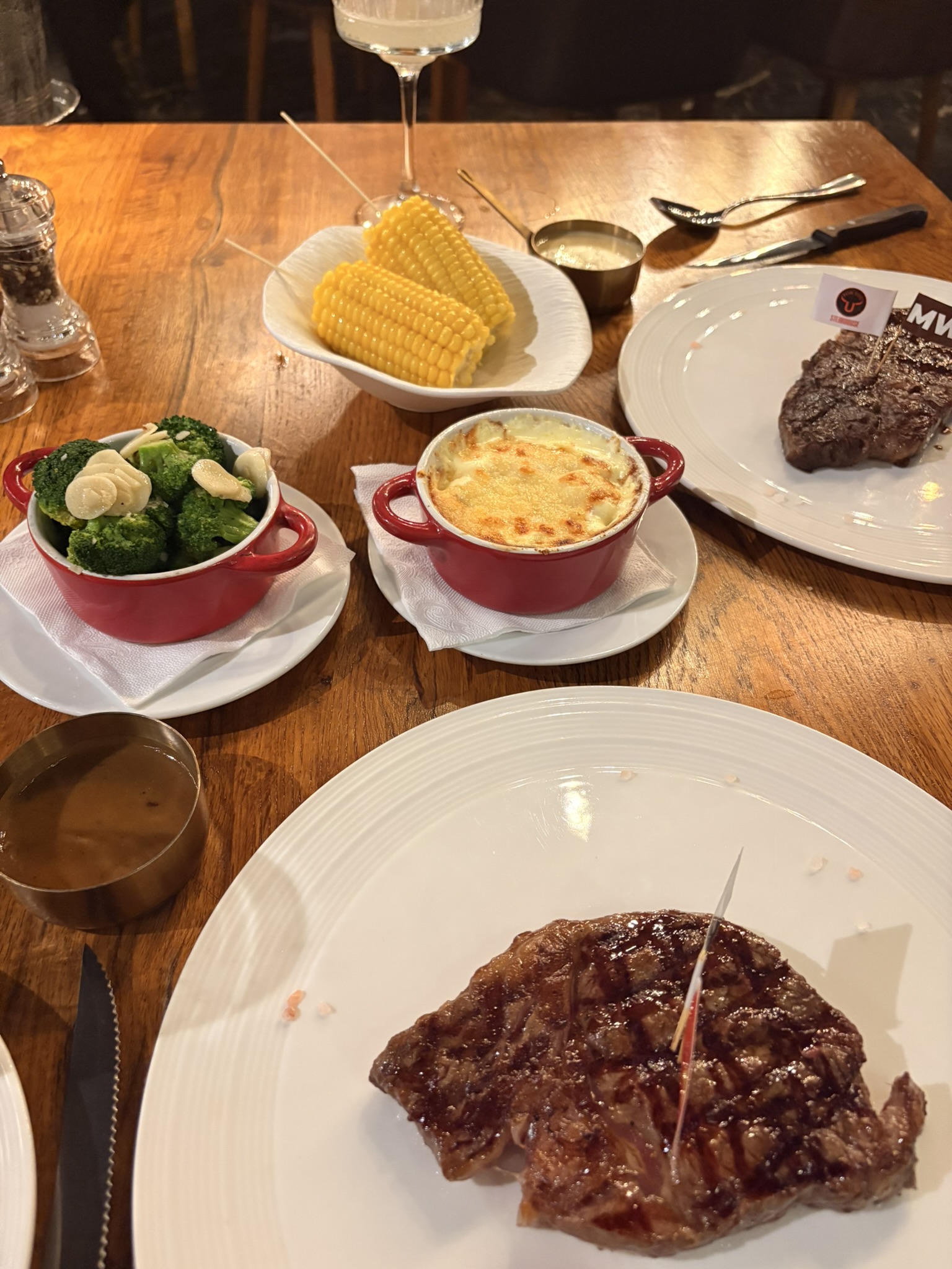 That night Stephen and I peeled off of the group and went to dinner at a Western steak house we saw while out earlier. The meal was delicious: soup and salad, two Wagyu ribeye steaks, one lobster tail, three side dishes, a bottle of wine, two margaritas for Stephen and dessert. All for less than $200 US dollars!