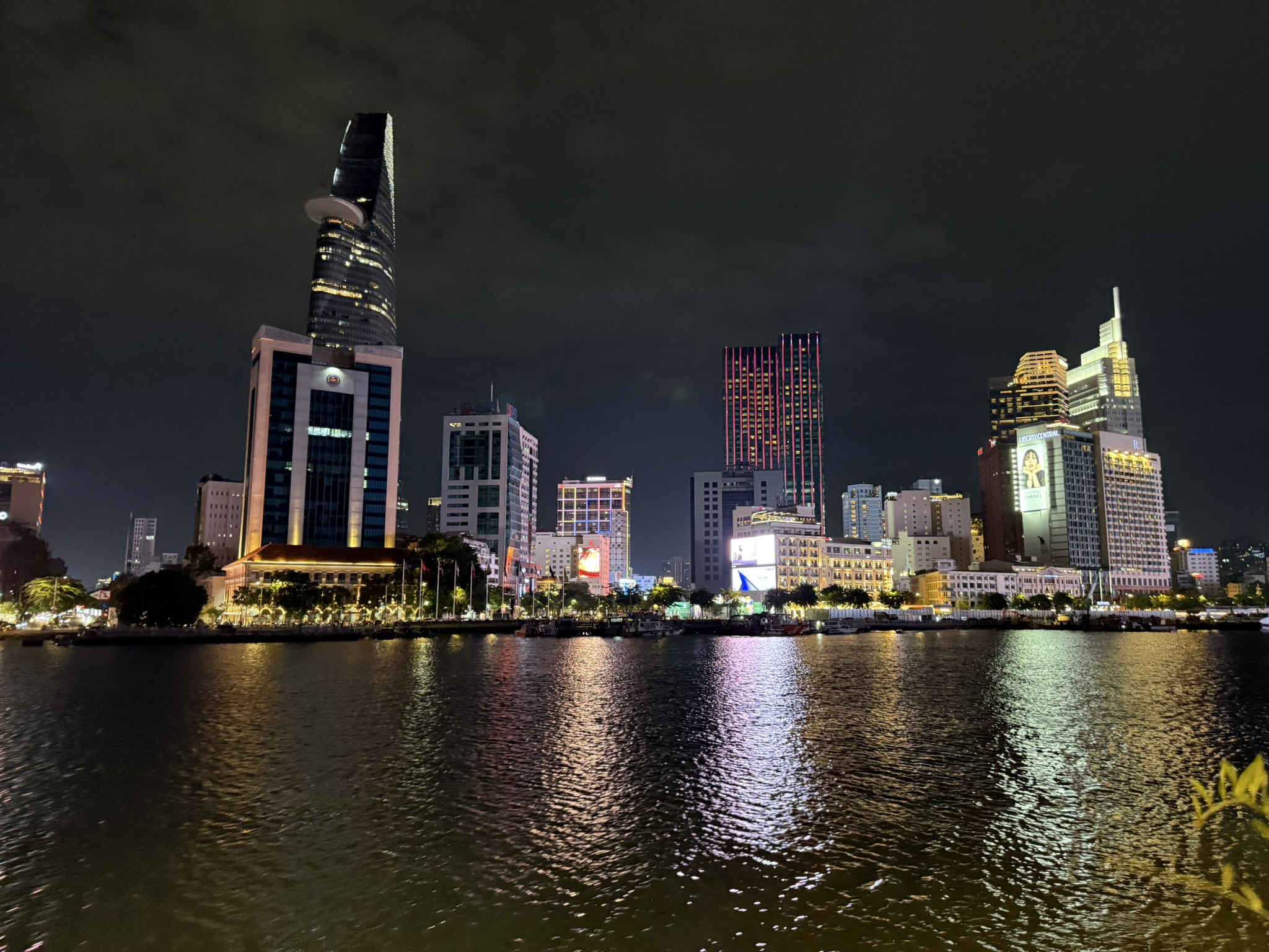 Before dinner, Cherry arranged for her aunt the masseuse to give Stephen and me massages in our room. She had her other cousin do lashes on some of the women in our American travel party in their room. Later that evening we headed out on a dinner cruise along the river. The buffet was a wide variety of traditional Vietnamese food. We laughed, talked and drank the night away while enjoying a scenic tour of the city from the boat. The city is quite impressive with skyscrapers, lights and a bustling atmosphere. I likened it to Vietnam’s New York City.