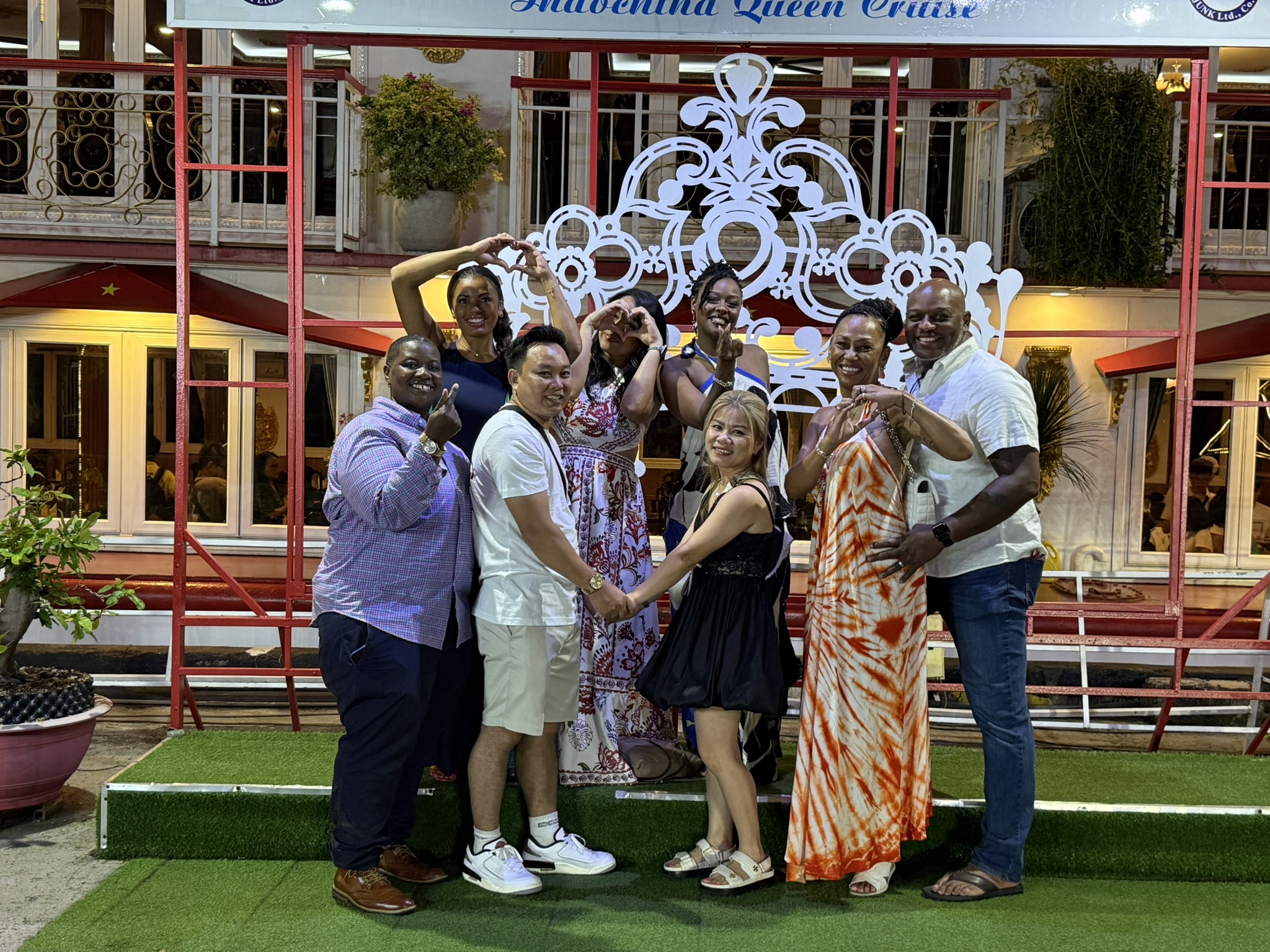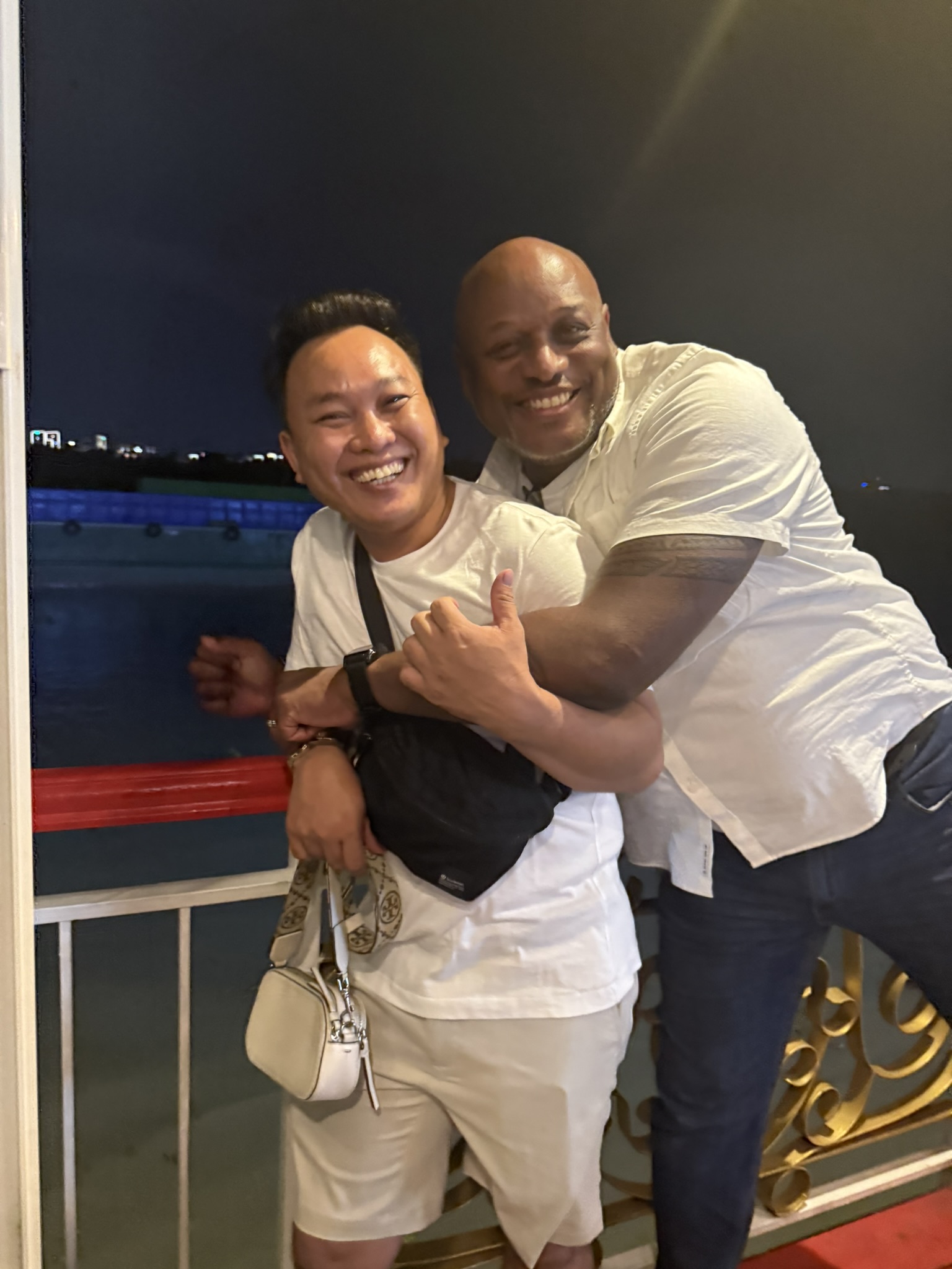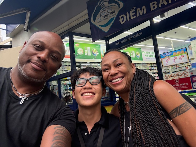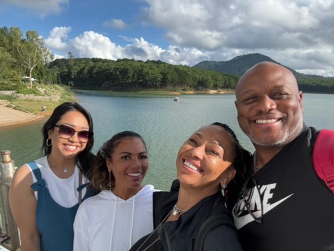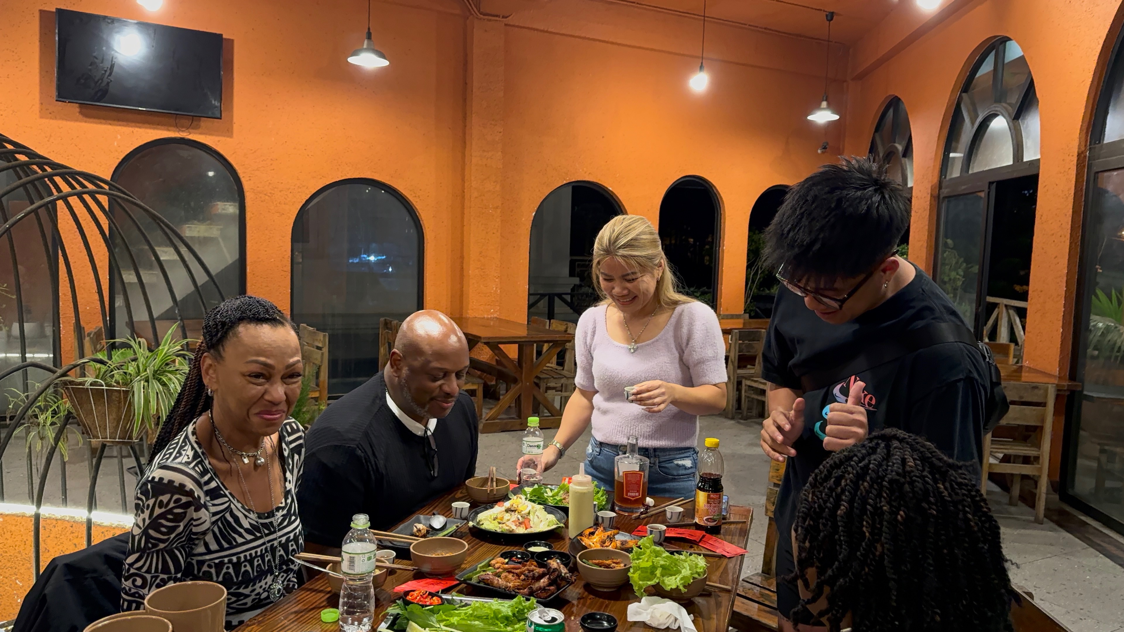 Stephen and I were taken back to Cherry’s mom’s house where we participated in a blessing ceremony of the bride and groom. We were seated with her elder married couples representing her American elder family. The ritual consisted of the bride and groom kneeling before each couple sharing glasses of wine and the elder couples offering their blessings and a toast to the couple. It was an honor I was not expecting. As Cherry and Luan knelt before us, sharing wine and receiving our blessings, I felt the weight of tradition and the warmth of inclusion. We weren’t just guests – we were family.