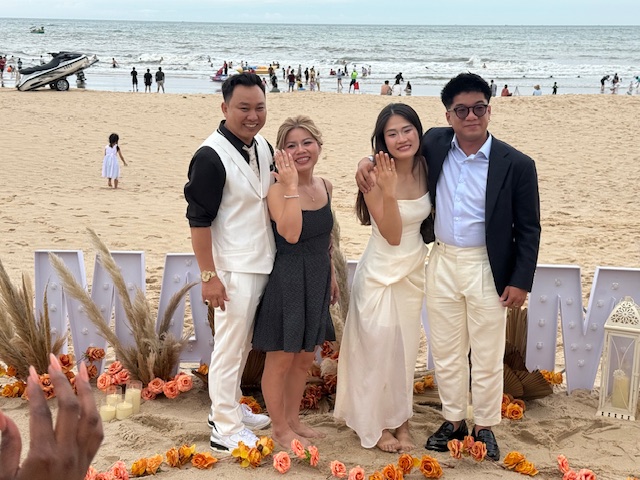 After the reception we headed to the beach where Cherry’s brother Ryan arranged a surprise proposal to his fiancé. Ryan and Mina met in Canada where they live. When she found out she was expecting, they flew to Vietnam before she gave birth to perform some of the ceremonies we mentioned before. I’m told that was done to “legitimize” their son Luca since they weren’t married. Their actual wedding is planned for next year in Vietnam. It was important to Ryan that Mina get an official proposal including the ring, so the surprise on the beach was very romantic. After the proposal we headed to our villas where thankfully the beds were western beds and much better for familiar sleeping.