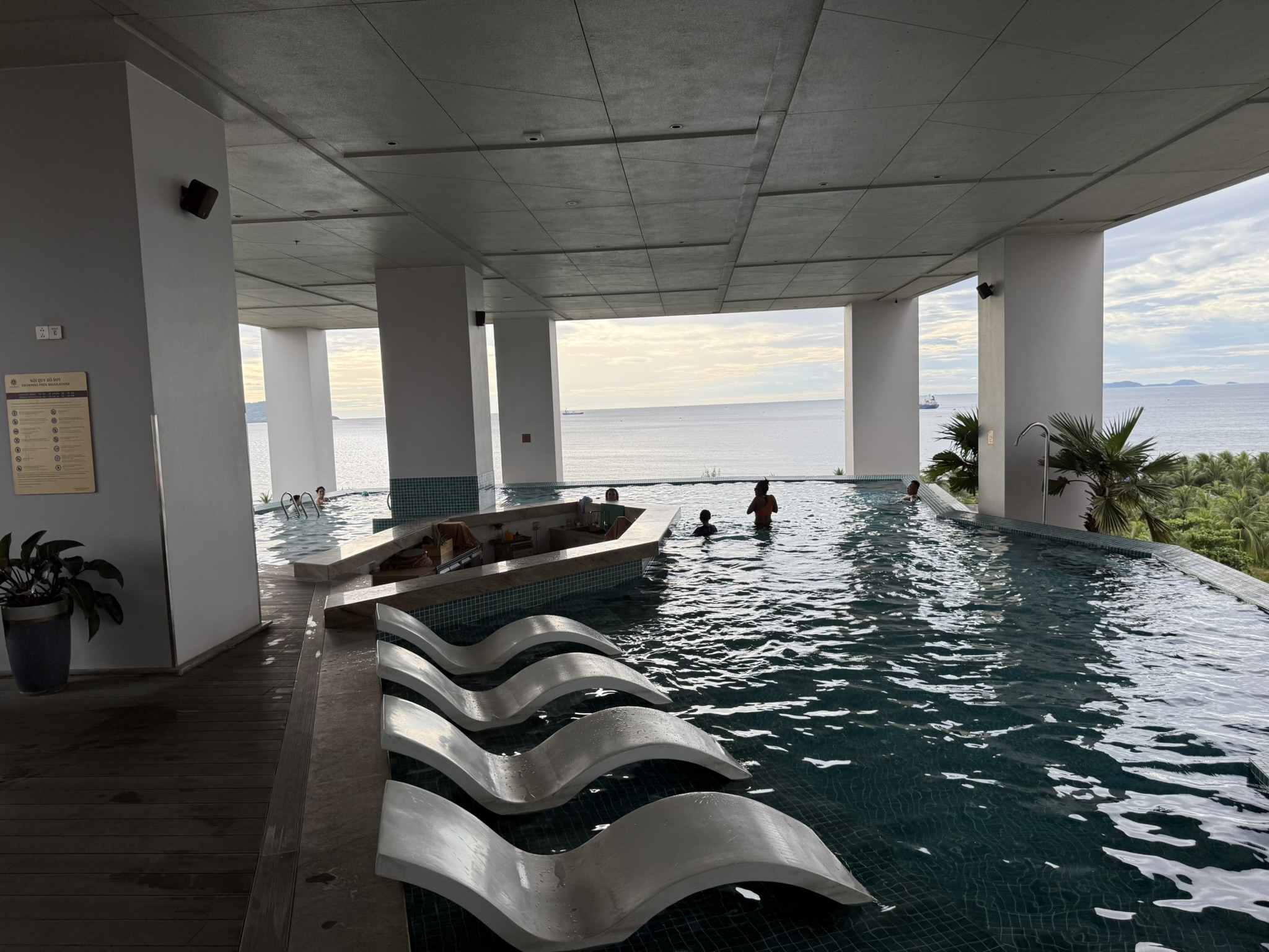 The next day was a much-needed chill day. We relaxed at the pool. I drank far too much Vietnamese coffee but didn’t regret it. We had massages and I got a coffee scrub that was relaxing and delightful. Stephen’s 90-minute massage was $37 US Dollars. Later that evening Stephen and I worked on getting champagne and held a cake in our room that Ryan ordered to celebrate Mina’s birthday the next day at breakfast.